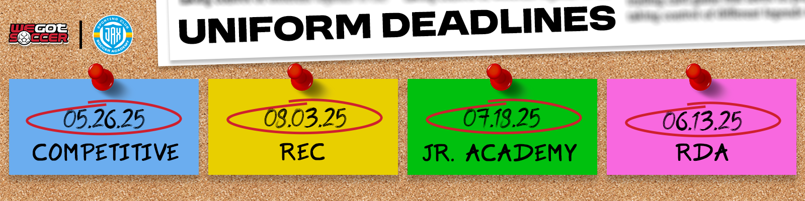 UNIFORM ORDERING DEADLINES: